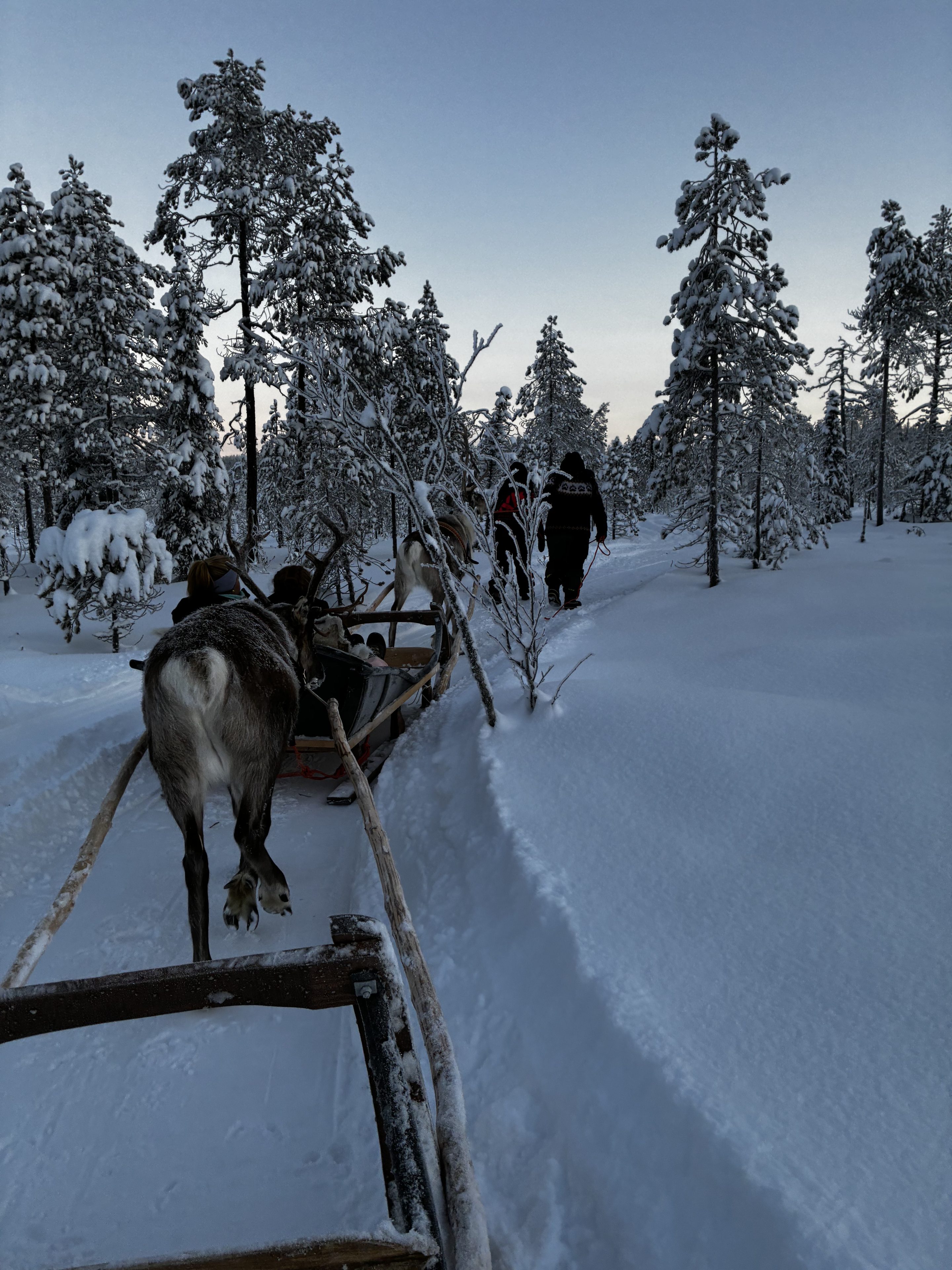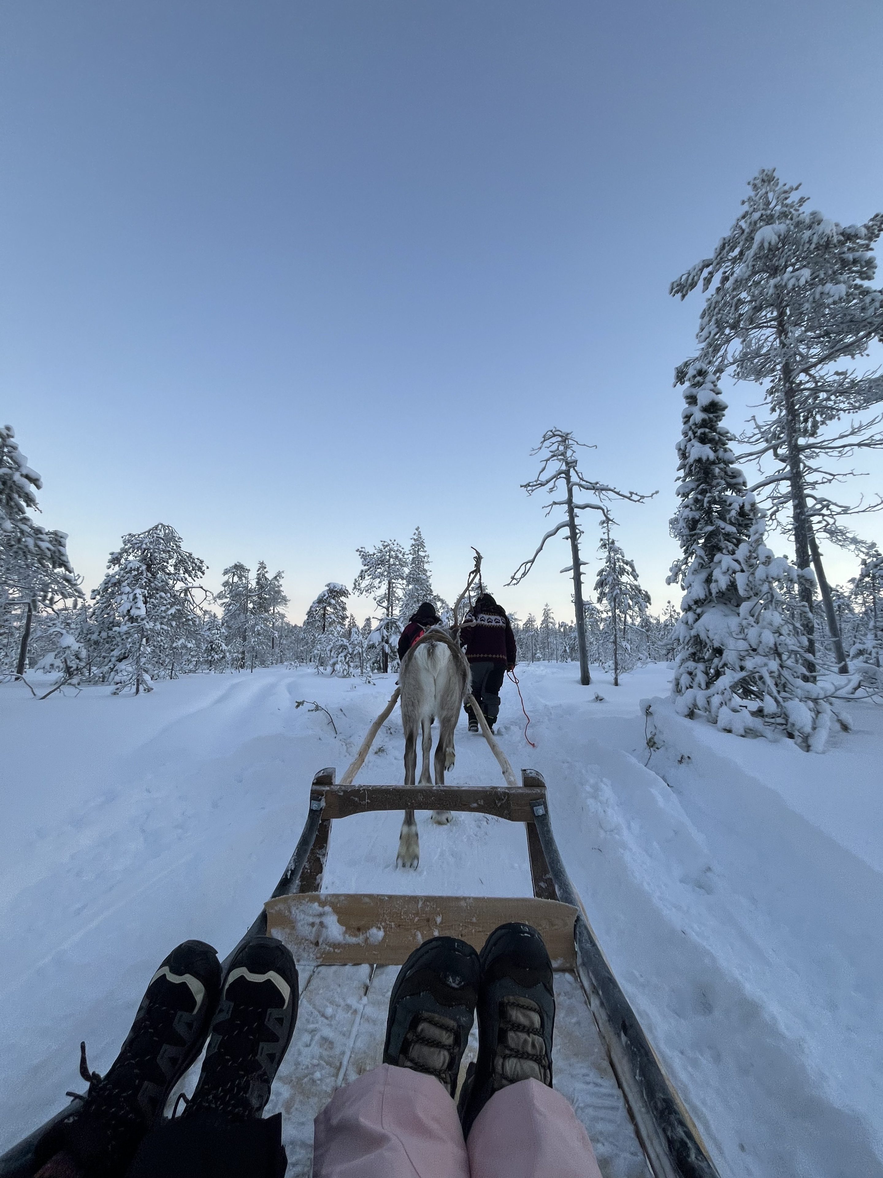 A traditional reindeer sleigh ride through the snowy forest (approx. 6–7 minutes)